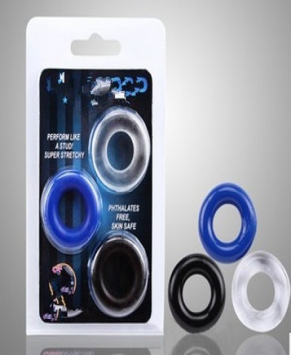 Набор эрекционных колец 3-х цветов. Сделаны из эластичного материала. Не имеют запаха и вкуса.