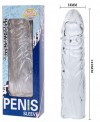 Удлиняющая насадка на член с закрытой головкой, призванная увеличивать размеры полового члена и стимулировать пролонгацию секса, выполнена из термопластической резины – мягкого и почти идентичного натуральному материала. Прозрачность насадки не скрывает естественной реакции полового члена, оставляя его на обозрение, что может оказывать дополнительную стимуляцию чувственности обоих партнеров.